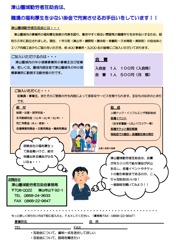 津山圏域勤労者互助会に加入しませんか!!